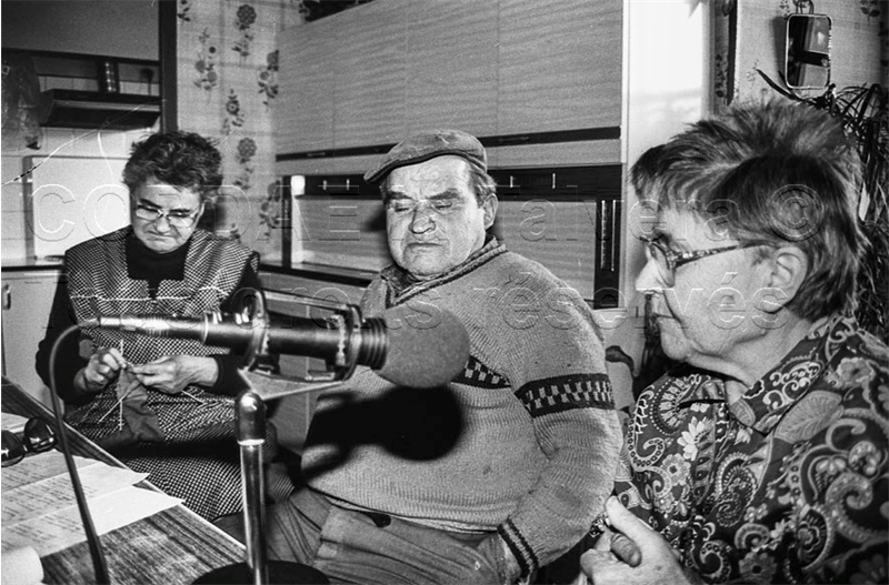 De gauche à droite : Odile, Clément et Marie-Louise Constans (au micro), en mars 1992 au Méjanel..